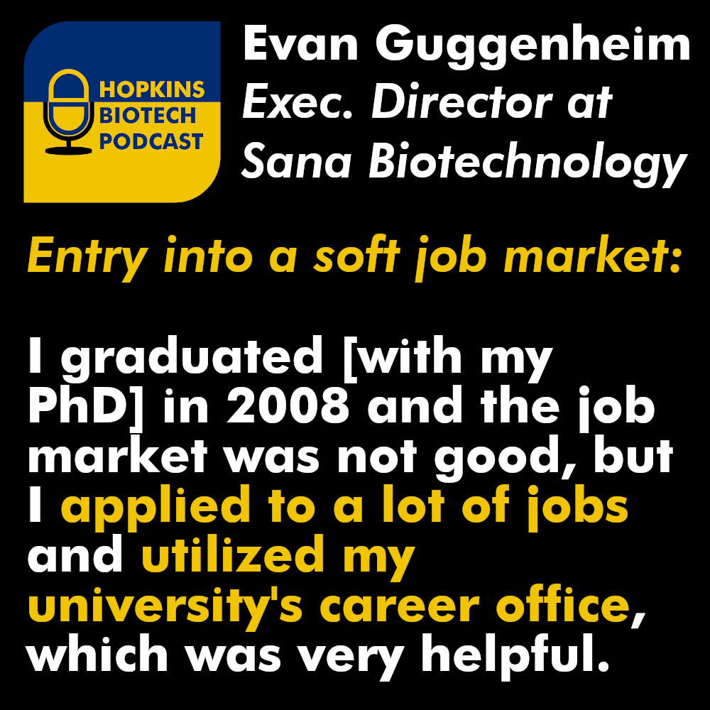 Evan Guggenheim, PhD is an Executive Director & Head of Research Operations at Sana Biotechnology, a startup dedicated to developing stem cell therapies and methods for in vivo delivery of gene therapy components to treat a variety of diseases. Prior to joining Sana, Evan worked as a Scientist at a sequencing company called Intelligent Bio-Systems (acquired by Qiagen in 2012) as well as at the large biotechnology company Biogen, where he rose through the ranks from the position of Scientist to ultimately become the Director of R&D Strategy and Portfolio Leadership.